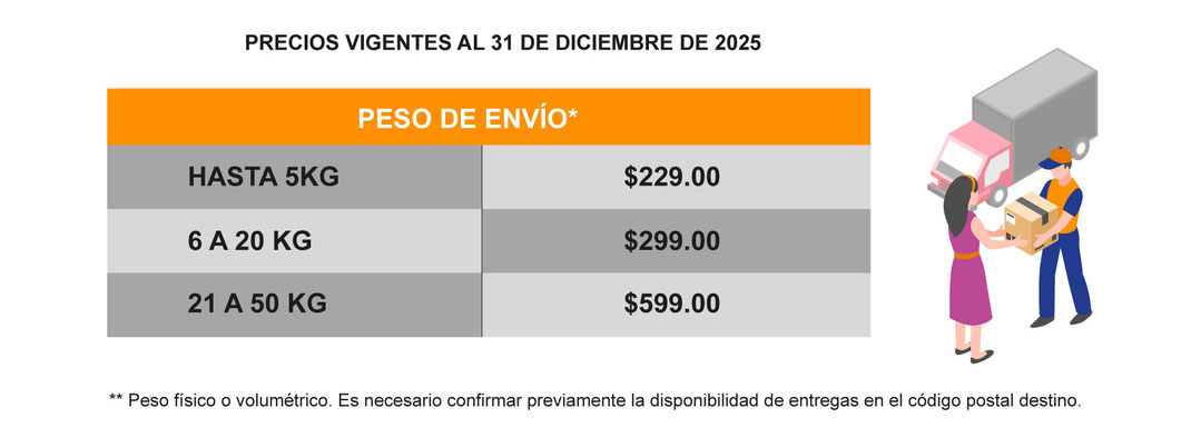 • Cotización de Envío Express: Si necesitas tu pedido con urgencia, podemos ofrecerte una cotización personalizada para el Envío Express con un costo adicional. Simplemente contacta a nuestro equipo de ventas en línea a través de WhatsApp al número 5554731473. Proporciona tu nombre, número de pedido, y la fecha aproximada en que requieres recibirlo. Explora con nosotros las opciones disponibles y, una vez aceptada la propuesta, recibirás una cotización detallada por el costo adicional, así como las instrucciones para el pago.